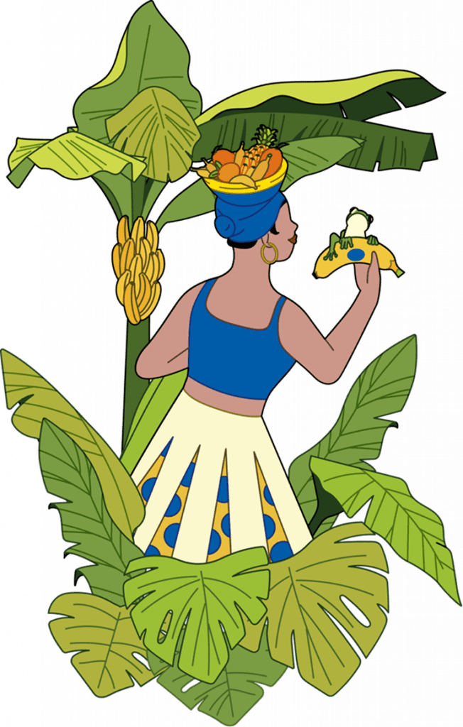 In this artwork, Miss Chiquita comes to life through Jiaqi Wang’s modern, pop‑inspired vision as the proud embodiment of the brand’s tropical soul. Miss Chiquita holds the banana close to her chest — a heartfelt symbol of authenticity, heritage and joy. Her confident pose and warm expression celebrate Chiquita’s tropical nature, while vibrant colors and joyful landscapes echo the brand’s Costa Rican heritage.