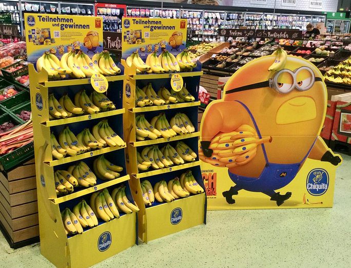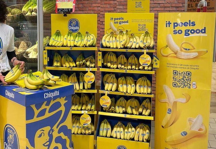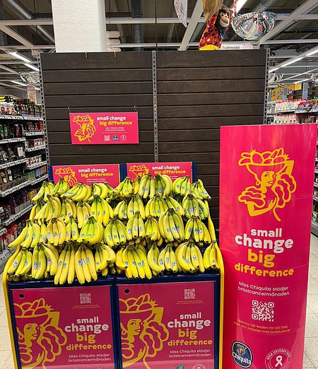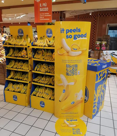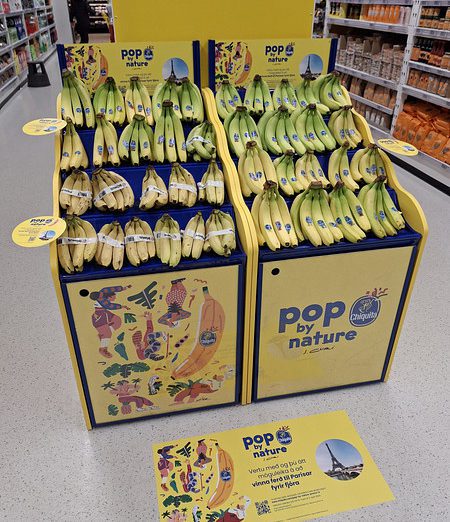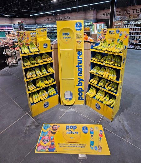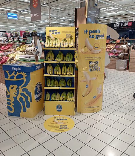 The Chiquita Carousel is a light, mobile display designed to adapt to changing store needs. It can be easily repositioned to high-traffic areas, enabling cross-selling opportunities also beyond the traditional fruit & vegetable category. The interchangeable topper allows to seamlessly align the display with the latest campaign on air.